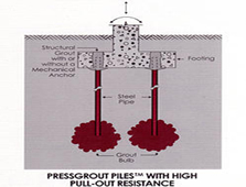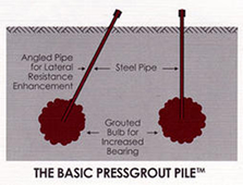 Second, PressGrout Piles can be installed at any angle to support lateral loads. Our piles have a particular advantage for structures that require a high level of lateral resistance because of seismic, wind, or hydrostatic soil or water loading.