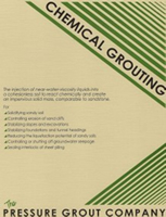 The chemical/permeation grouting technique has been used to underpin existing foundations, create excavation support walls, create water cutoff walls and stabilize soils for tunneling. A key advantage of chemical/permeation grouting is the ability to introduce grout into soil pores without any essential change in the original soil volume and structure, thus changing the support capability of granular soils without disturbing them. Another advantage is the ability to be less disruptive and enable tunneling to proceed without over-excavation. Also,download our company brochure about this technique.
